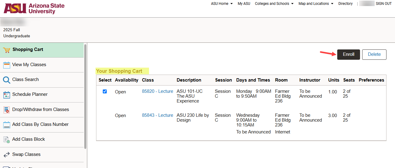 Students enroll in class blocks through My ASU self-service registration.  Only class blocks that they are