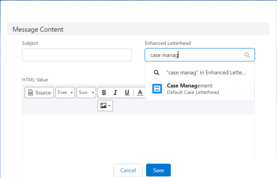 3. Enhanced Letterhead, this field is highly suggested to stay consistent with ASU email templates. Add Case Management in the Enhanced Letterhead field.